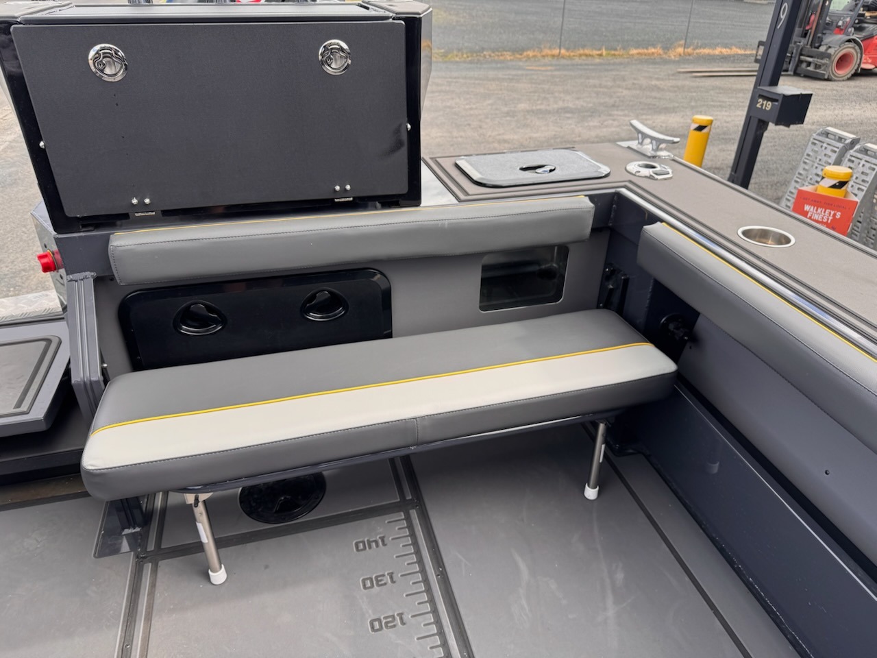 The Yellowfin YF76 Extended Cabin is a 7.6-meter, heavy-duty plate alloy offshore vessel featuring a 45% larger cabin than previous models for increased shelter, comfort, and overnighting capabilities. Built with a 6mm hull and 19-20 degree deadrise, it provides a stable, dry, and soft ride. It is optimized for serious fishing with massive deck space, U-Dek flooring, and extensive customization options.