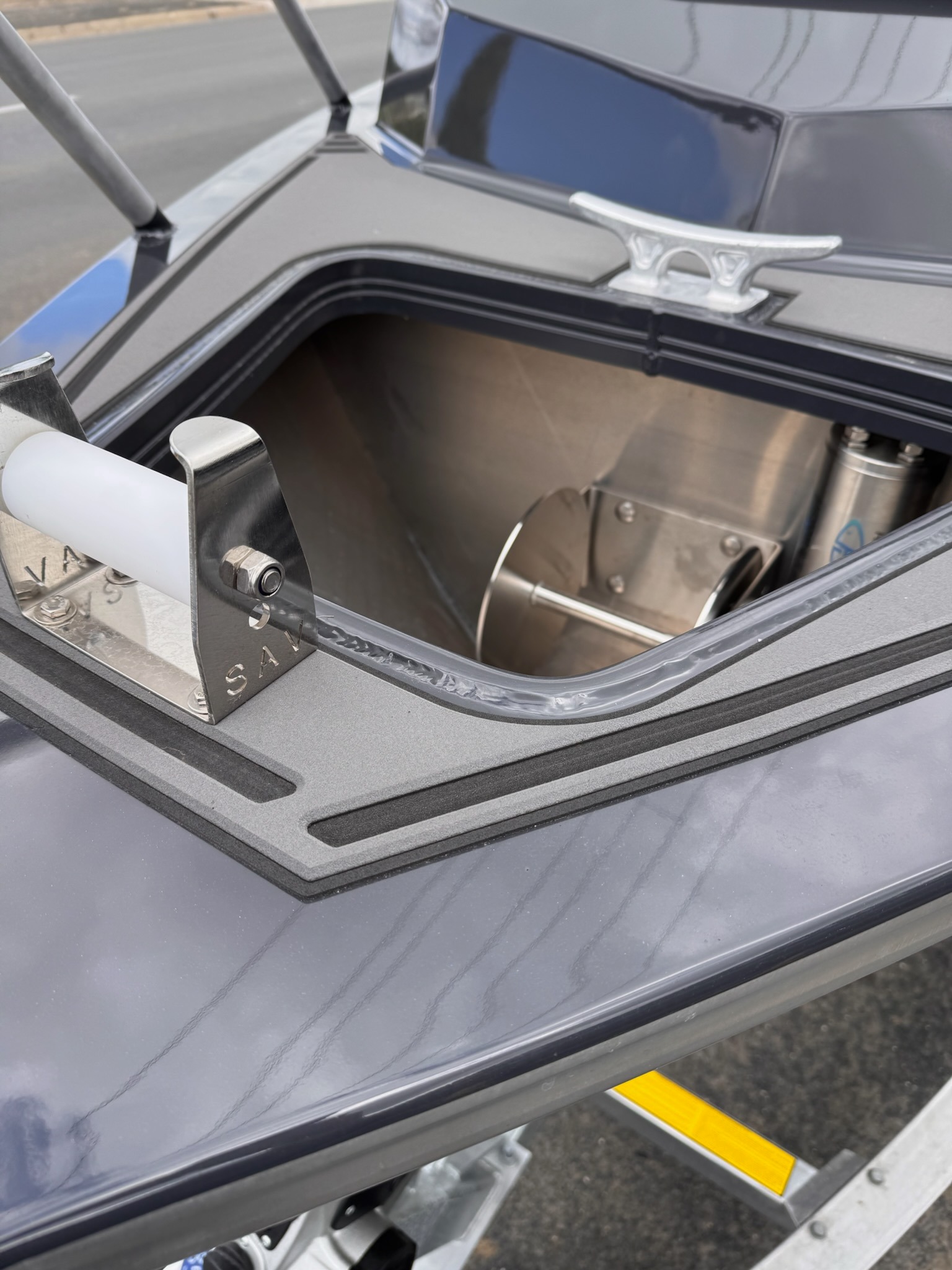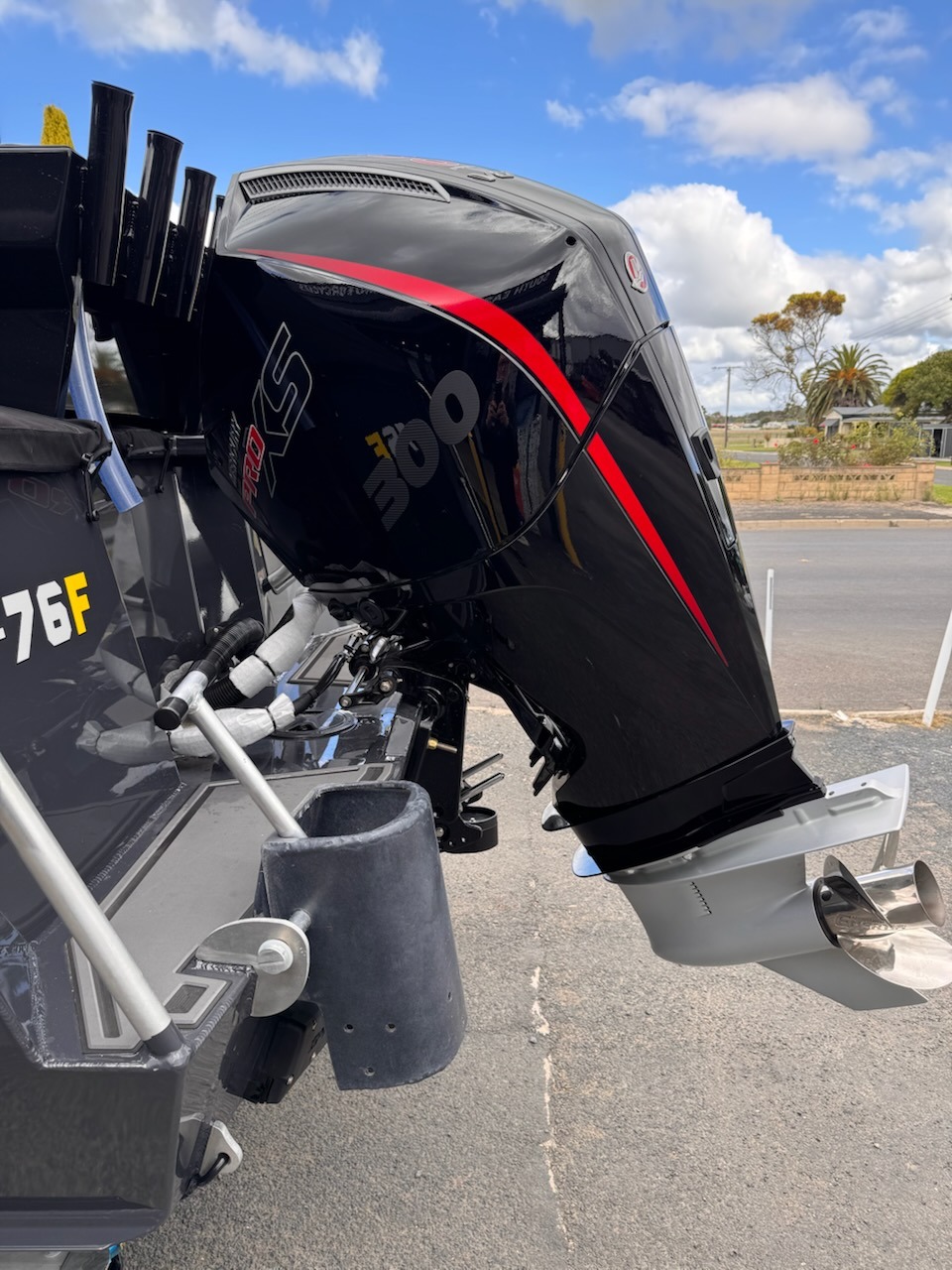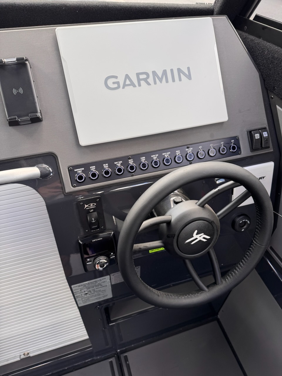 Rated for up to 300hp, it handles offshore conditions easily, equipped with a Mercury 300hp PRO XS along with Zip Wake trim tabs.