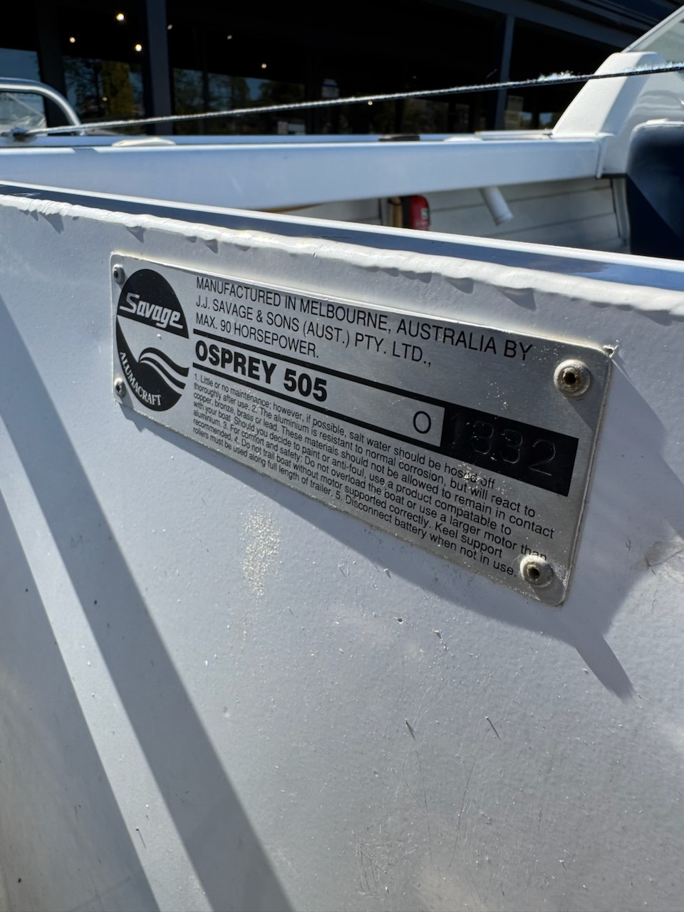 This 1995 Savage Osprey is here on consignment. The boat/hull is in excellent condition for its age along with the trailer and the motor has been recently serviced. Reluctantly selling the boat due to physical disability. The boat is fitted with dual sounders, SAV winch electric anchor winch, kill tank, large esky and safety gear. Come to the yard & check it out, you wont be disappointed Price is negotiable All enquiries to 08 8762 2344