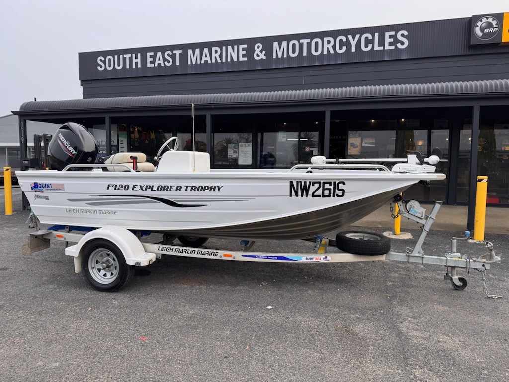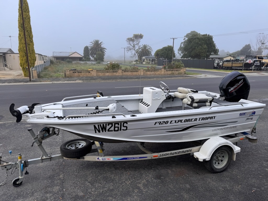 This 2020 Quintrex F420 Explorer Trophy is the ulimate estuary/lake/river fishing boat, powered by a Mercury 50hp Fourstroke outboard with only 185 hours.