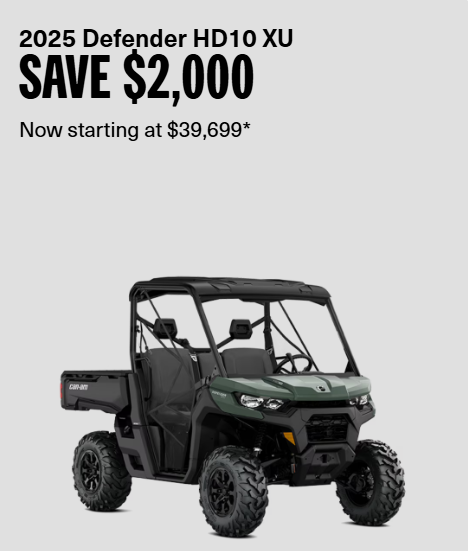 Offer valid on all MY25 Defender XU HD10 models sold in Australia from 1.4.2026 to 30.6.2026 at participating authorized BRP dealers. The conditions may vary depending on your location and this offer is subject to termination or change at any time without notice. This offer is not refundable, exchangeable or transferable (including from dealership to another), cannot be redeemed for cash, credit or other products of equivalent value and cannot be combined with any other offer or rebate. Null where prohibited by law. Until supplies last. MSRP is the estimated single price and includes commodity surcharge, freight and pre delivery charges. Accessory installation costs may not be included. Depending on your geographic location, certain additional fees might be applicable. Please note the vehicle may not be exactly as shown, and selected models and accessories might not be available at the dealership. Dealers may sell for a different price, for full and accurate vehicle pricing information, please contact your local dealer for a detailed quote and availability.