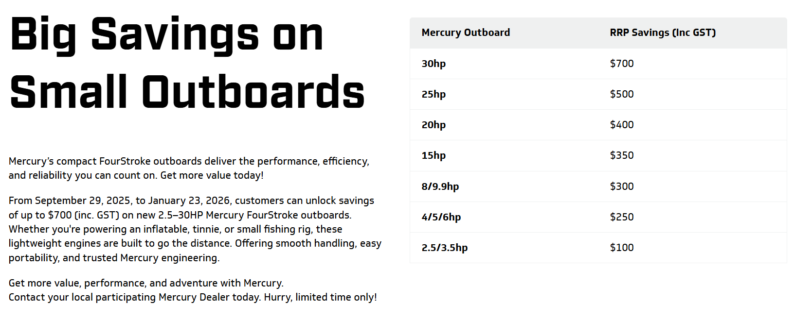 Big Savings on Small Outboards: Save Up to $700 on Mercury 2.5 to 30HP Portables
