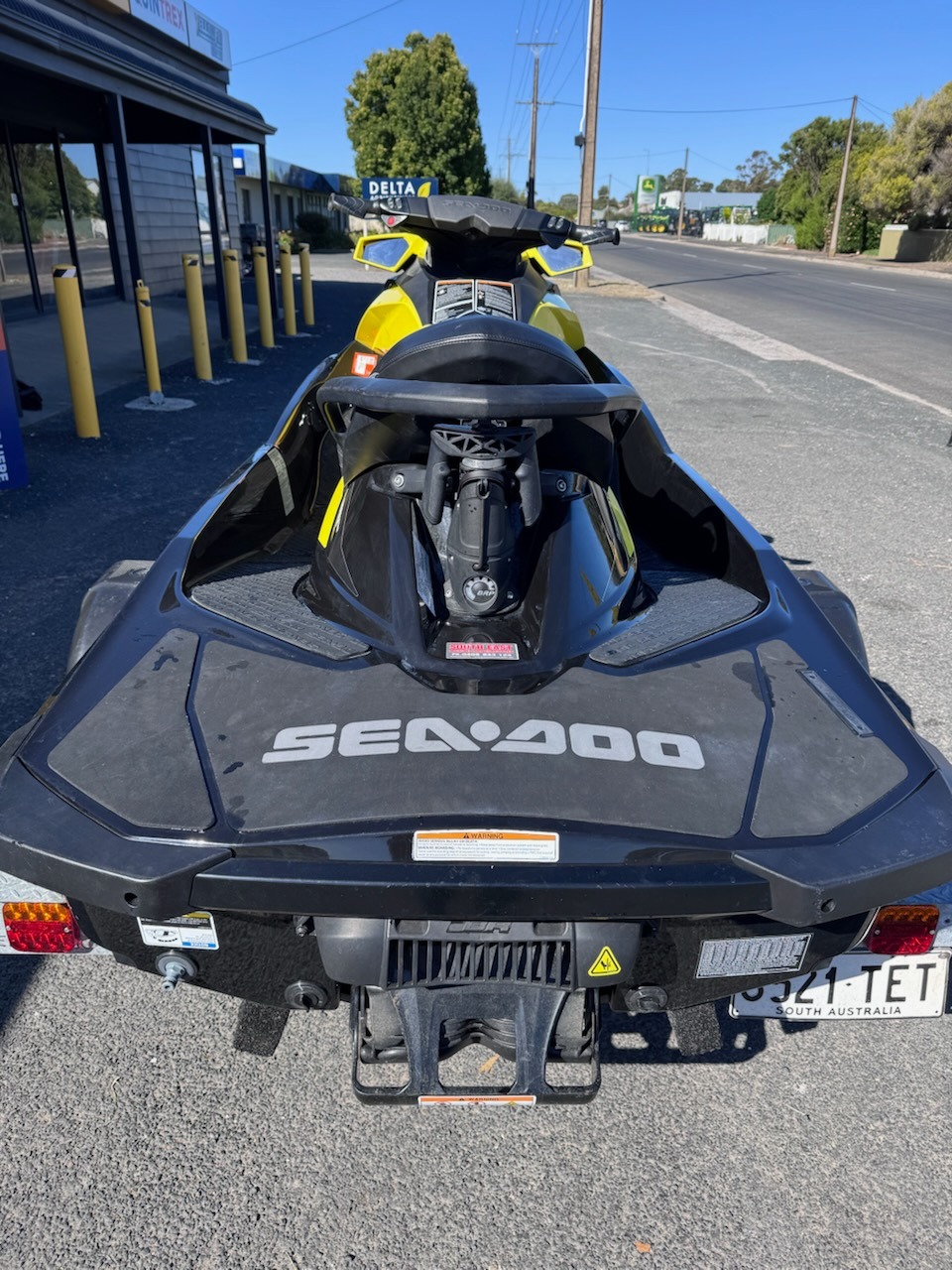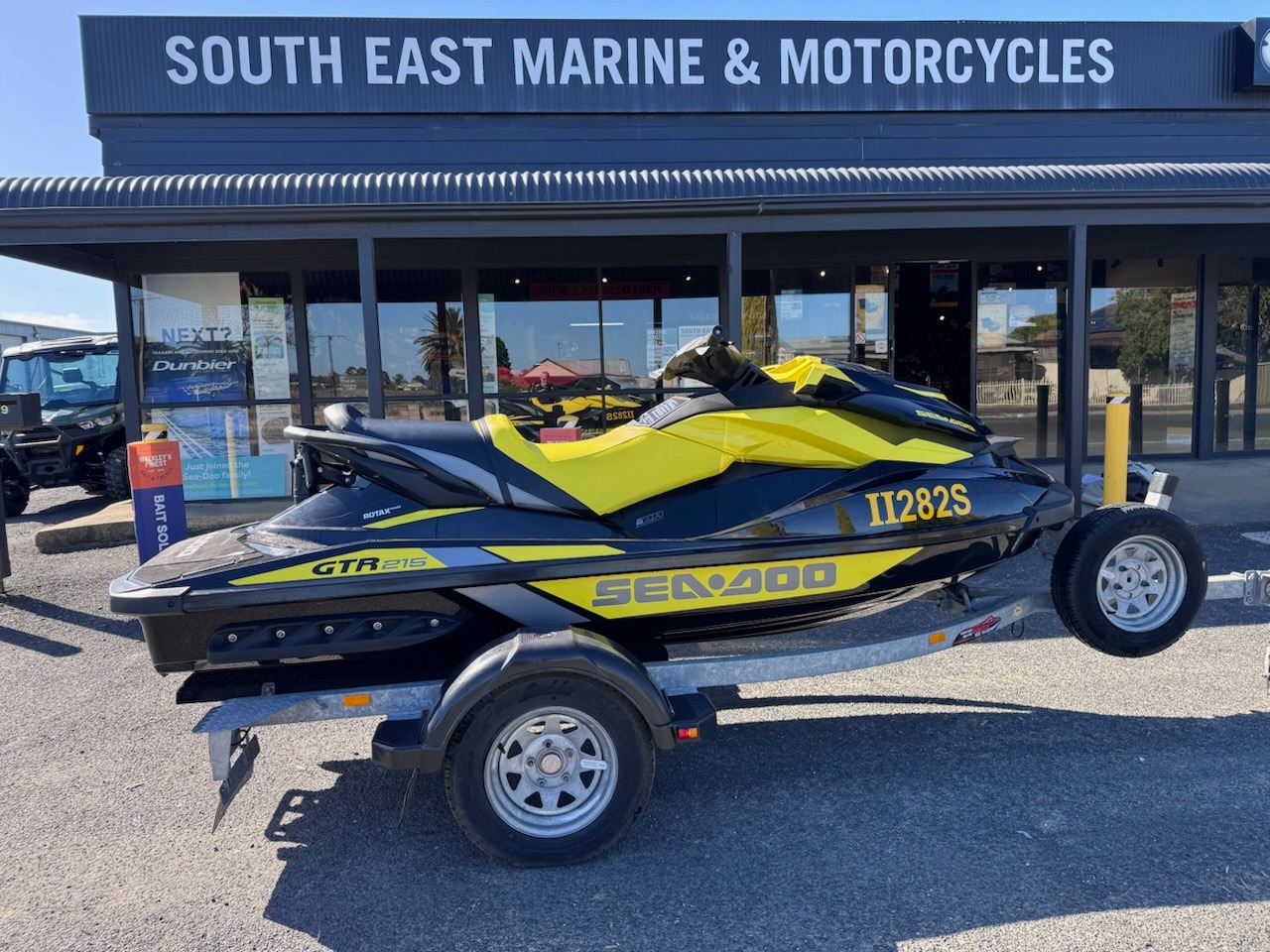 The 2016 Sea-Doo GTR 215 in Sunburst Yellow is a 3-passenger performance personal watercraft featuring a